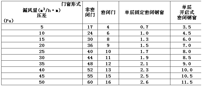 表7 圍護(hù)結(jié)構(gòu)單位長度縫隙的滲漏風(fēng)量