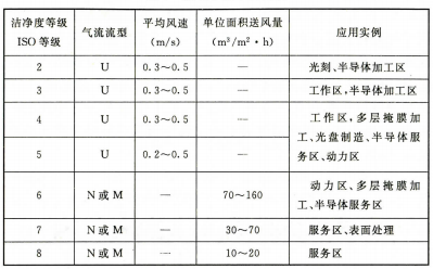 6.1.2 應(yīng)根據(jù)空氣潔凈度等級的不同要求,選用不同的氣流流型。