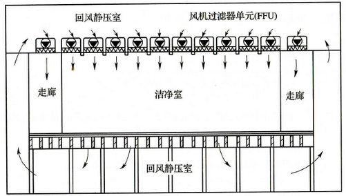 圖2 風(fēng)機(jī)過濾器單元送風(fēng)方式(FFU)示意圖