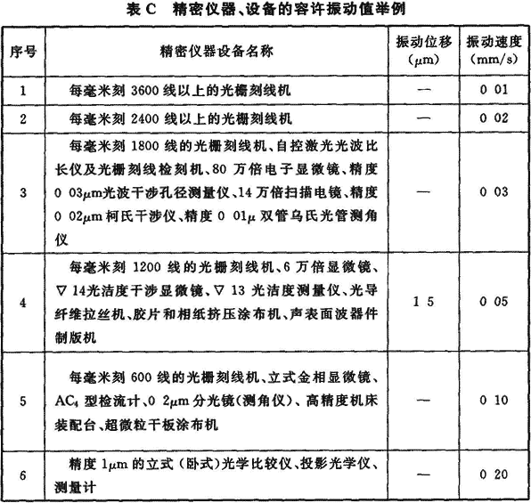 附錄C 精密儀器、設(shè)備的容許振動值舉例:
