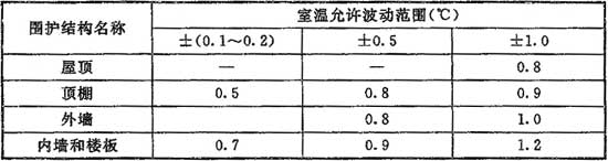 注:表中內(nèi)墻和樓板的相關(guān)數(shù)值僅適用于相鄰空氣調(diào)節(jié)區(qū)的溫差大于3℃時(shí)。